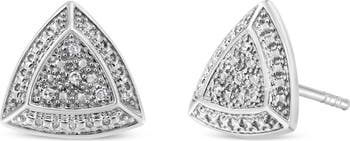 Silver Diamond-Accented Trillion Shaped 4-Stone Halo-Style Stud Earrings