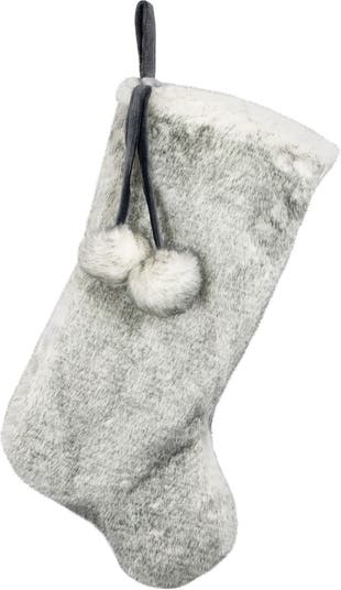 Silver Fox Faux Fur Christmas Stocking with Pom Poms - 20.5"
