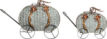 - Elevate your home decor this harvest season with the Transpac Metal 21.5 in. Silver Harvest Beaded Pumpkin Wagons Set of 2, crafted from durable metal and featuring a stunning silver finish, perfect for indoor tabletop displays. Easy to clean and maintain, ensuring your decorative pumpkin wagons stay beautiful for every harvest season. Elevate your fall decor with the Transpac Metal 21.5 in. Silver Harvest Beaded Pumpkin Wagons Set of 2, perfect for gift giving and seasonal celebrations, featuring a stunning silver finish and intricate beaded design for a stylish touch to your indoor tabletop. Pumpkins themed set in a vibrant gray.