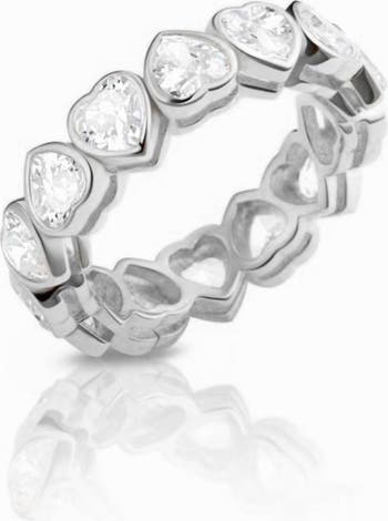 A modern symbol of love and elegance, the Heart Eternity Ring is designed to shine from every angle. This striking band features a continuous circle of sparkling heart-shaped stones, each carefully set in a sleek bezel setting for a clean, contemporary look. The smooth metal finish beautifully frames every stone, allowing their brilliance to stand out while providing a comfortable, durable design for everyday wear. Perfect as a meaningful gift or a romantic statement piece, this ring represents everlasting love with its full eternity silhouette. Whether worn alone for a delicate statement or stacked with other bands, it adds effortless sparkle and charm to any jewelry collection.
