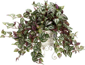 What an interesting (and sometimes frustrating) plant the wandering Jew is - you plant it, and it spreads all over. But put your scissors away - you won't need them here. This is a classic re-creation of a beautiful, leafy Wandering Jew, captured forever in its prime. This silk beauty is then adorned in a beautiful metal planter, ensuring its elegance remains exactly where you want it.
