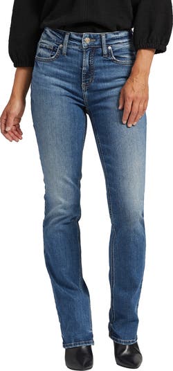Cut to flatter every curve, these stretchy bootcut jeans feature a gap-proof contoured waist and a little extra ease in the hip and thigh.