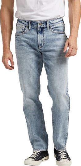 Built to fit an athletic figure, these light-wash jeans feature extra room in the hip and thigh area before tapering to straight legs below the knee.