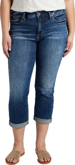 Designed to flatter a curvy figure, these slim-fit capris feature indigo-wash stretch denim and a contoured waist that offers a comfy, gap-proof fit.