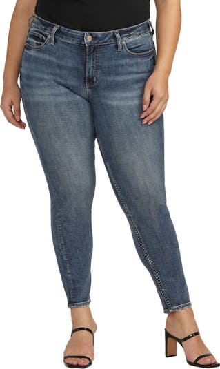Designed to enhance a curvy figure, these casual skinny jeans feature stretchy denim, a gap-free contoured waistband and added ease in the hip and thigh.