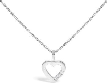 Silver Lab Grown Diamond 1/4 Cttw Three Stone Heart Pendant Necklace