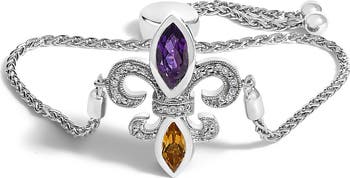 Silver Marquise Amethyst, Citrine and Diamond Lariat Fleur De Lis Bolo Bracelet