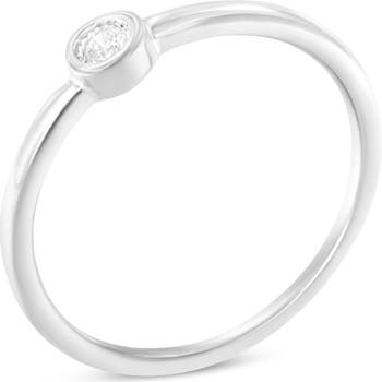 A classic look for the classic girl. Fashioned in stunning sterling silver, this promise ring features a shimmering 1/20 cttw round diamond solitaire in a unique miracle plate setting for maximum sparkle. This piece is crafted in the finest .925 sterling silver, and is plated with rhodium (a platinum-family metal) for a lifetime of tarnish-free wear. The diamond is set in a circular shaped setting for a unique twist on the traditional promise ring design. This ring is the most elegant way to promise yourself to her. Show your commitment with this diamond promise ring.