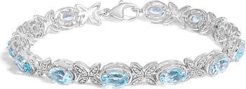 Haus of Brilliance Silver Oval Blue Topaz Diamond Butterfly Link Bracelet -   Inches, Alternate, color, White