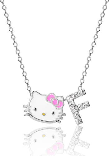 Elevate your style with the Sanrio Hello Kitty Silver Plated Enamel Pave Initial Slider Necklace. This chic accessory features an elegant slider pendant adorned with sparkling pave crystals and your choice of initial, adding a personalized touch to your look.