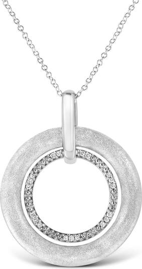 Silver Prong-Set Diamond Accent Satin Finished Double Circle Pendant Necklace