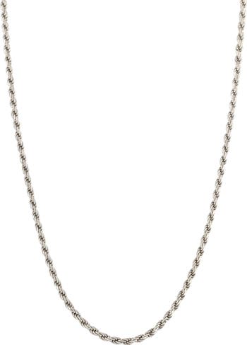 A rhodium finish plates this sterling silver rope necklace that brings classic refinement to your daily stack.