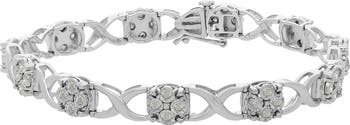 For the one person who you want to hold onto forever, here's the perfect gift to let her know. An interlocking sterling silver band brings together rounded links embedded with diamonds for a beautiful reminder that you're never letting go. Rose-cut, promo quality diamonds are milky and cloudy in nature. They have an asymmetrical ball shape and are filled with inclusions.