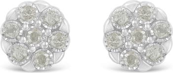 Haus of Brilliance Silver RoseDiamond Floral Cluster Stud Earring, Main, color, White