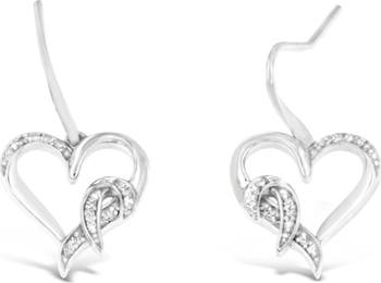 Representing the symbol of love, these heart shaped earrings are composed of high-quality sterling silver and buffed high to shine. The stunning jewel is embellished with sparkling round cut diamonds in a pave setting. The authentic earrings make a must-have accessory that every woman should have in her collection.