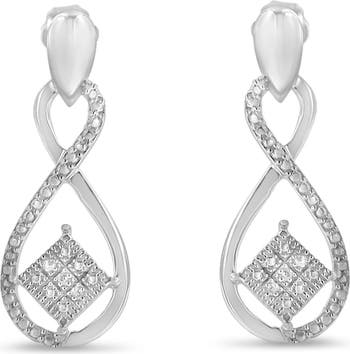 Silver RoundDiamond Accent Tilted Square and Infinity Drop Earrings