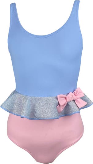 Silver Shimmer Ruffle and Bow One-Piece Swimsuit