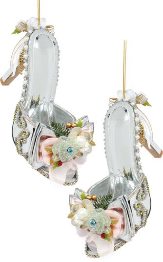 Silver Shoe Slip on with Trim Ornament, Set of 2