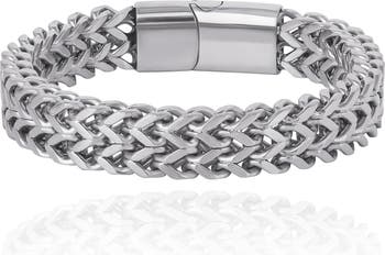 Elevate your everyday style with the Lucky Brand Men's Silver-Tone Woven Chain Bracelet. Crafted from durable metal with a sleek silver-tone finish, this bracelet features an intricate woven chain design for a bold yet sophisticated look. The sturdy magnetic clasp ensures secure wear while adding a modern touch to the design. Whether worn solo or layered with other accessories, this bracelet is perfect for adding a stylish edge to casual and formal outfits alike. Designed for durability and comfort, it's an essential piece for any modern wardrobe.