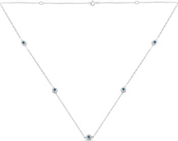 Silver Treated Blue Color Diamond Station Necklace