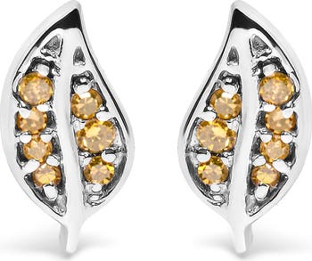 Silver Yellow Diamond Accent Leaf Stud Earrings
