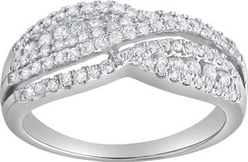Sleek and radiant the Silvera Crest ring features 0.65 carats of natural diamonds set in polished 10K gold. Multiple rows of pave diamonds sweep across the top in a graceful crossover design for a layered look with brilliant sparkle. Perfect as an anniversary band a wedding band or a standout everyday ring it shines solo or stacked. Crafted with ethically sourced natural diamonds. Diamond carat weight may vary up to 0.05 carats from the stated weight.