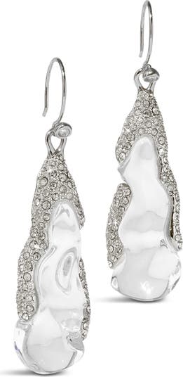 Sculpted lucite forms elongated drop earrings traced with sparkling pavé crystals that shimmer down the length for a striking statement look.