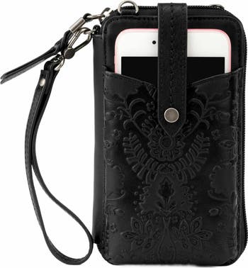 - Front phone pocket with snap tab closure, back 2 credit card slots