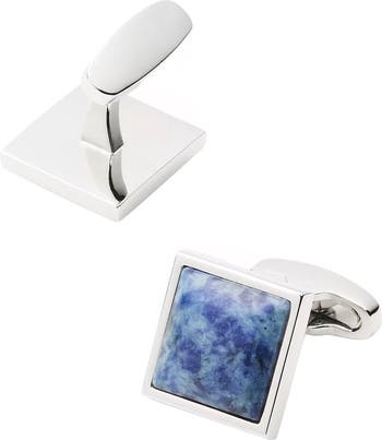 The polished genuine blue lapis gemstone in these versatile cufflinks is set in silver tone square bezel.