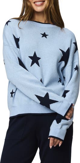 An allover galaxy charms this sweater knit from soft cotton-blend yarns kissed with a hint of silk that take the cozy vibes everywhere you go, day or night.