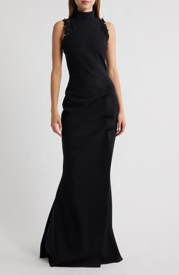 Beaded details at the shoulder instantly (and elegantly) accessorize a shapely gown that will be admired from the first toast to the last dance.