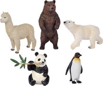 - 5 UNIQUE WILDLIFE FIGURES: Includes a brown bear, polar bear, llama, panda, and penguin, showcasing diverse habitats and ecosystems. These animals represent a variety of environments, from icy tundra’s to dense forests.