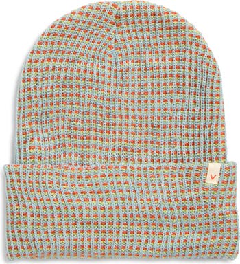 Soft yarns knit in a design inspired by classic gridding put a fresh spin on this cold-weather-essential beanie.