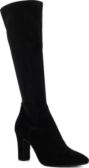 Refresh your wardrobe with the timeless appeal of this knee-high boot fashioned from rich suede.