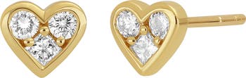 A trio of twinkling diamonds sweetens these handcrafted heart earrings that make the perfect gift for your beloved.