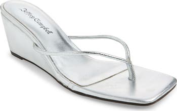 A squared toe adds extra style points to a wedge flip-flop that works for fun or fancy.