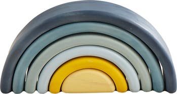 Your little one can improve their motor skills with this set of six arched pieces of wood in blue-and-yellow hues that nest beautifully together. The stained wood semicircles will delight your child's imagination and last for years to come.