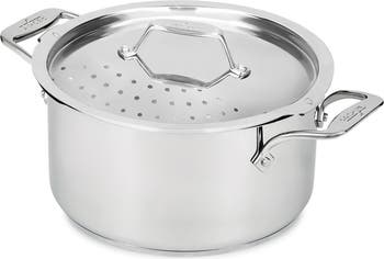 This kitchen workhorse combines the durability and performance of stainless steel with a built in straining lid for hassle-free cooking.