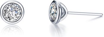 Simulated diamonds glimmer in these bezel stud earrings crafted from sterling silver.