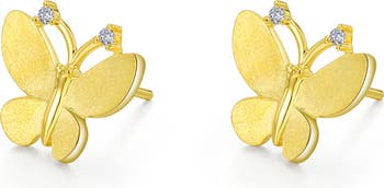 Brilliant butterflies alight upon your earlobes with these gilded earrings accented by glittering simulated diamonds.