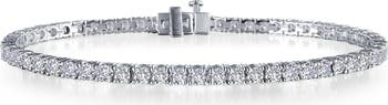 Show off glamorous sparkle with an elegant platinum-bonded sterling silver tennis bracelet illuminated by shimmering simulated diamonds.