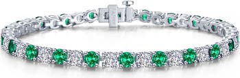 Brilliant simulated emeralds deepen the brilliance of this simulated-diamond tennis bracelet that's hand-polished to timeless perfection.