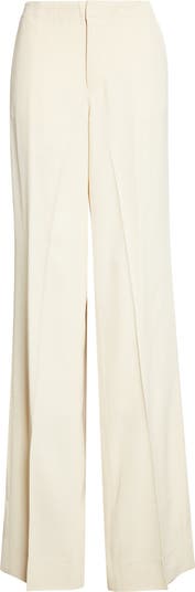 These straight-leg trousers are tailored from a silk-kissed fabric with back-slit hems that enhance their easy, drapey flow. They were featured on the label's 'Bacchanal' runway, a collection that serves as a joyful ode to Caribbean culture, inspired by the history of Carnival.