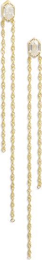 Swingy sterling silver Singapore chains are plated in 18-karat gold and attached to faceted cubic zirconia anchors in these dazzling drop earrings that sway with each step.