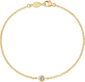 Perfect for day or night, this sterling silver Dewdrop chain bracelet features a single aquamarine encased in a dainty nugget setting, with an 18ct yellow gold vermeil finish. Fasten securely with our signature quatrefoil lobster catch and wear alone or stack with other bracelets for a layered look. Complete your outfit with a stack of our matching Twinkle rings.