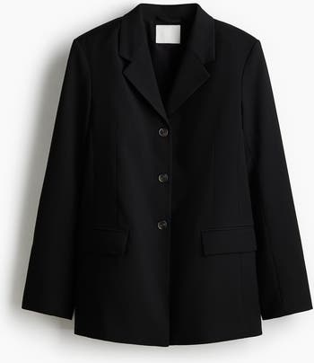 Single-breasted blazer in woven fabric with notch lapels and buttons down the front. Shoulder pads, long sleeves with a slit and buttons at the cuffs, and jetted front pockets with a flap. Single back vent. Lined.