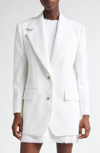 Part of D&G's Capri collection celebrating summers in '60s Italy, this optic-white single-breasted blazer is tailored from richly textured cotton-forward tweed.