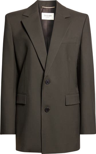 This long, relaxed-fit wool jacket is expertly tailored in Italy with a strong-shoulder design and front flap pockets.
