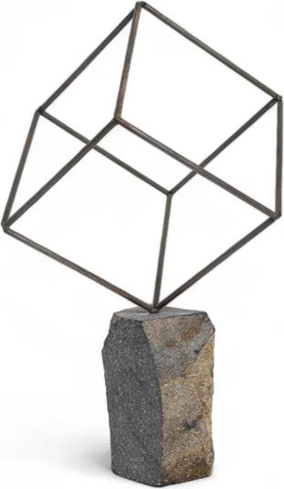 The Single Cube sculpture is crafted in Sabana Grande, Honduras using metal and rock. Each piece is meticulously made by skilled artisans and then assembled to create a unique piece of art. Each piece will have slight variations due to its unique process.