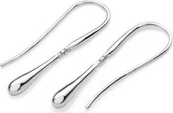 These elegant Single Drop Earrings from Lucy's iconic Drip Collection offer timeless sophistication. Featuring sleek sterling silver drops that dangle gracefully from classic Shepherd's crook fastenings, they are perfect for everyday wear or adding a touch of elegance to special occasions. Handcrafted with precision and care, these earrings are inspired by the natural beauty of water droplets.